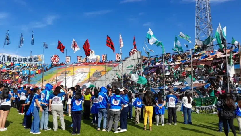 Desde el mediodía y hasta la tarde, los grupos de alumnos de distintos colegios desplegaron sus coreografías y cánticos, alentando con entusiasmo a sus instituciones y llenando de energía las tribunas y el césped.